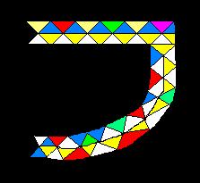 I get migraines from time to time. Generally they are not very severe, an average headache with an ill gut feeling. In 1973 for almost exaclty 12 months I would get a migraine roughly once a month preceded by seeing dots which interfered with my vision. I didn't get them again until about 1999 again for about a year, not regular though. This time they were preceded by a growing spiral fractal. Just recently (2003) I had another migraine preceded by a similar growing fractal, but this time a different shape. I have attempted to draw my impression of it below. It is a little more animated than the drawing suggests. |